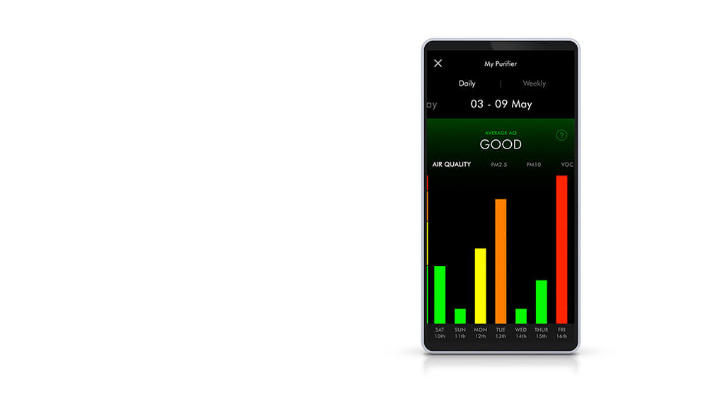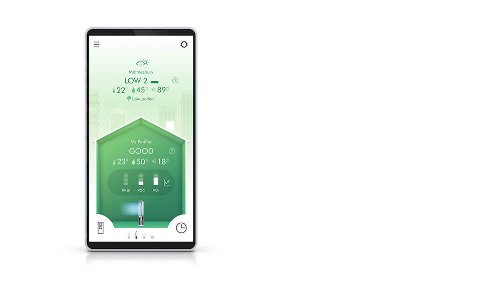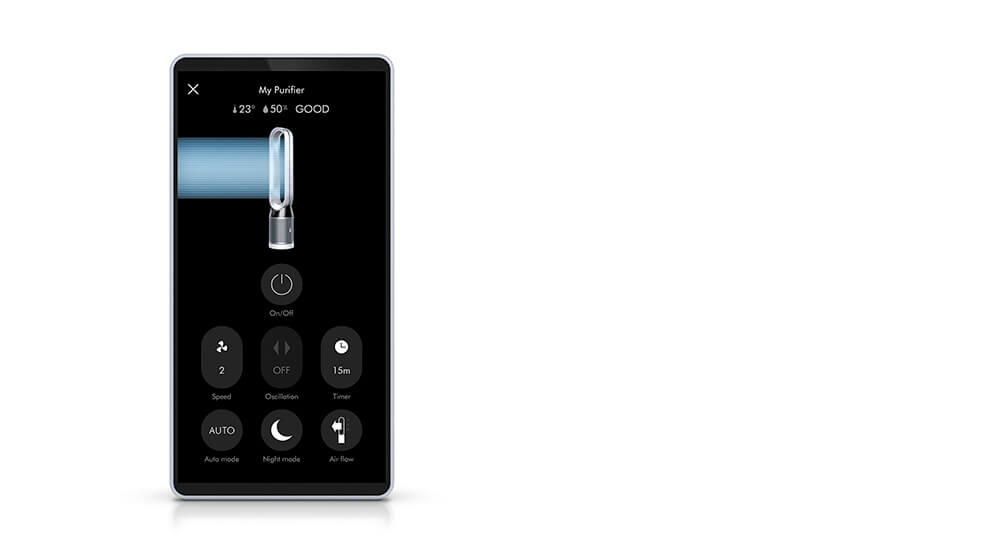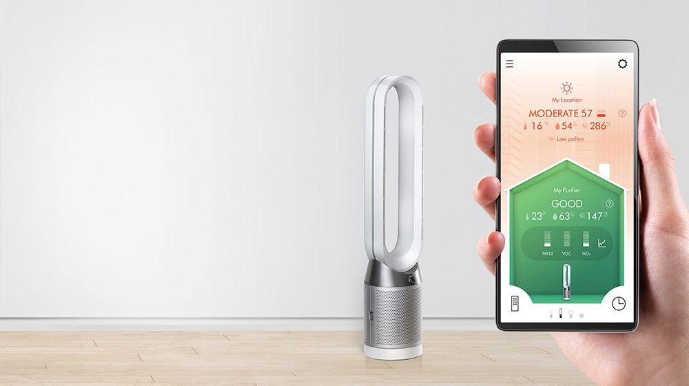 Irányítsa Dyson Pure Cool™ légtisztító ventilátorát és kapjon gyors helyzetjelentést a kül- és beltéri levegőminőségről- közvetlenül okoeszközéről vagy készülékéről. Részletes jelentések a levegőminőségről, készülék helyzetéről, szennyezettségről és a szűrő élettartamáról.