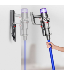 A Dyson V11 ™ porszívó a falra szerelt dokkolóba helyezhető, mely részben a töltésre, részben pedig a kiegészítők rendszerezett tárolására szolgál, így mindig készen áll az újbóli használatra.