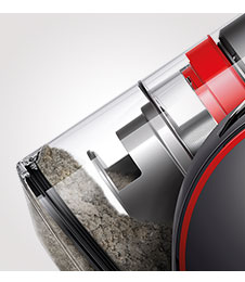 Dyson Cinetic™ technológiával rendelkező porszívónk összesen 35 darab bevúvókával rendelkezik, melyek végén található oszcilláló gumitölcsérek gondoskodnak a levegő és a legapróbb porszemek elválasztásáról, melyek más porszívókat gyakran eltömíthetnek. Nincs szükség szűrőkre és a porszívó sem veszít szívóerejéből.